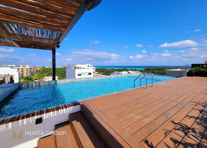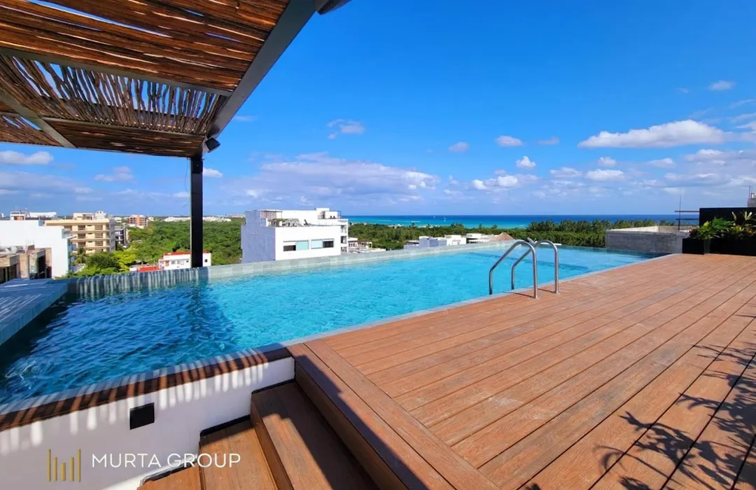 Este apartamento de 54 m², The Best Location! Playa del Carmen, está en el centro de Playa del Carmen, a tan solo 7 minutos a pie del club Martina Beach Club. El apartamento cuenta con una piscina desbordante y una terraza con vistas al mar.